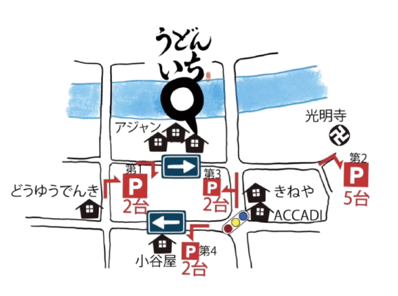 | お車でお越しの場合 | 専用駐車場がございます。 第一駐車場2台/第二駐車場5台/第三駐車場2台/第四駐車場2台 位置は案内図をご確認ください。 |